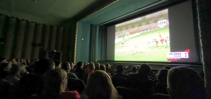 Miután elkészültünk a videóval, akkor jött az ötlet, milyen jó lenne ezt nagyvásznon is látni! Az álomból pedig valóság lett, március 11-én egy egyszeri, ingyenes vetítésen nézhettük meg ezeket az emlékezetes pillanatokat, majd beszélgethettünk róluk Herczeg Andrással, 150-160 más néző-szurkoló társaságában. Az eseményre a DTV is eljött, akik remek kis montázst vágtak össze belőle, érdemes megnézni. Hálásak vagyunk az Apollo Mozinak és Fejér Tamásnak, hogy helyet biztosítottak a programnak; a DVSC-nek, akik engedélyezték a vetítést; Herczeg Andrásnak, aki első hívásra örömmel jött; a Campus rádiónak és Váradi Ferenc műsorvezetőnek; és mindenki másnak, aki egy-egy megosztással, gondolattal, bátorítással támogatta az esemény létrejöttét.
